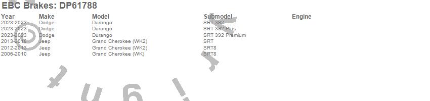 Below is an abreviated list of applications for the EBC 6000 Series Greenstuff Truck/SUV Brakes Disc Pads.