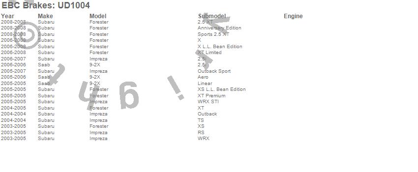 Below is an abreviated list of applications for the EBC Ultimax OEM Replacement Brake Pads.