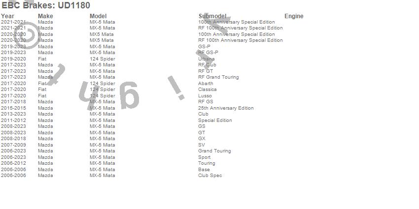 Below is an abreviated list of applications for the EBC Ultimax OEM Replacement Brake Pads.