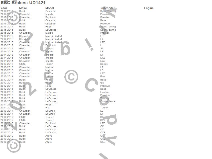 Below is an abreviated list of applications for the EBC Ultimax OEM Replacement Brake Pads.
