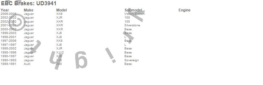 Below is an abreviated list of applications for the EBC Ultimax OEM Replacement Brake Pads. 200, XJ12, XJ6, XJ8, XJR, XK8, XKR, Audi, Jaguar, 2006, 2005, 2004, 2003, 2002, 2001, 2000, 1999, 1998, 1997, 1996 more…