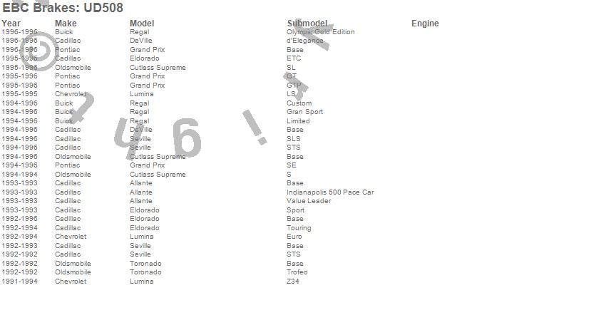 Below is an abreviated list of applications for the EBC Ultimax OEM Replacement Brake Pads.