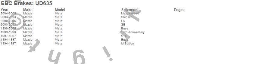 Below is an abreviated list of applications for the EBC Ultimax OEM Replacement Brake Pads.