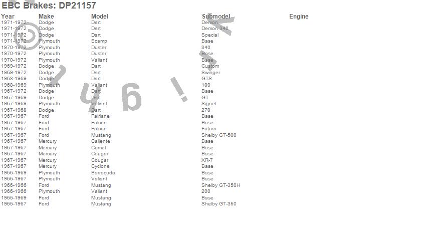 Below is an abreviated list of applications for the EBC Greenstuff 2000 Series Sport Brake Pads.