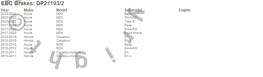 Below is an abreviated list of applications for the EBC Greenstuff 2000 Series Sport Brake Pads.