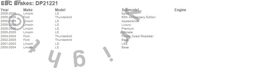 Below is an abreviated list of applications for the EBC Greenstuff 2000 Series Sport Brake Pads.