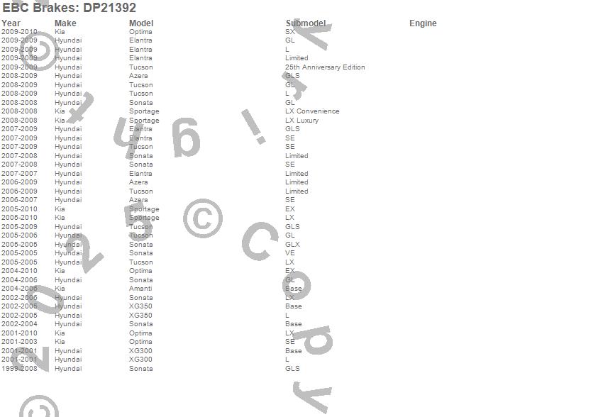 Below is an abreviated list of applications for the EBC Greenstuff 2000 Series Sport Brake Pads.