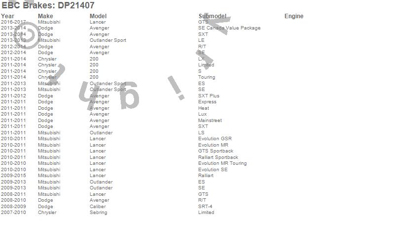 Below is an abreviated list of applications for the EBC Greenstuff 2000 Series Sport Brake Pads.