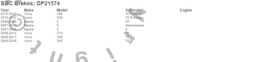Below is an abreviated list of applications for the EBC Greenstuff 2000 Series Sport Brake Pads.