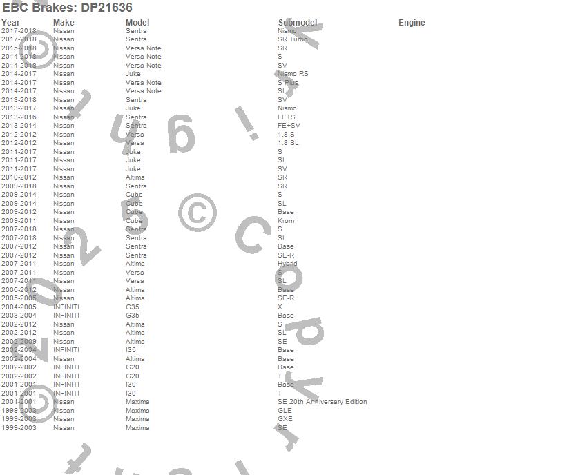 Below is an abreviated list of applications for the EBC Greenstuff 2000 Series Sport Brake Pads.