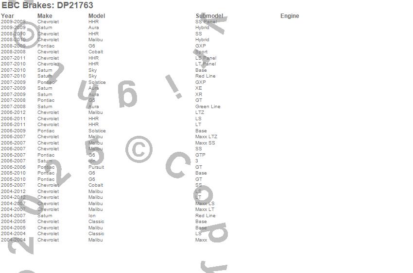 Below is an abreviated list of applications for the EBC Greenstuff 2000 Series Sport Brake Pads.