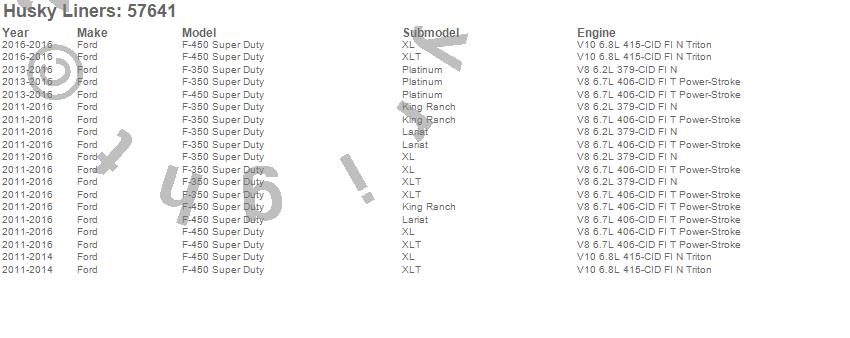 Below is an abreviated list of applications for the Custom Molded Mud Guards.