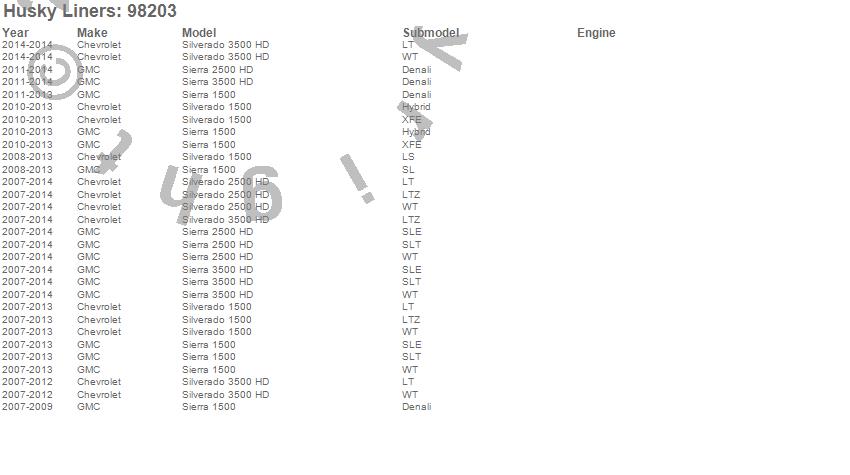Below is an abreviated list of applications for the WeatherBeater Floor Liner.