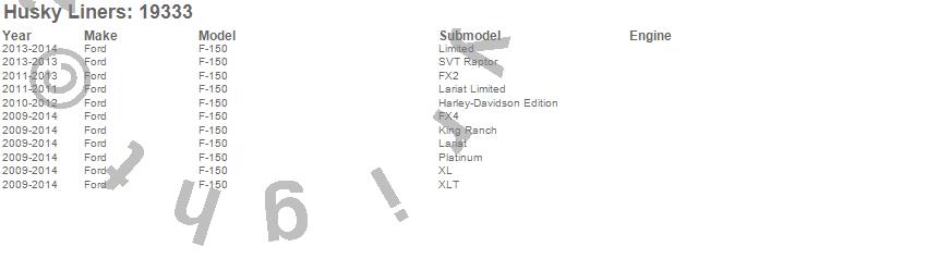 Below is an abreviated list of applications for the WeatherBeater Floor Liner.