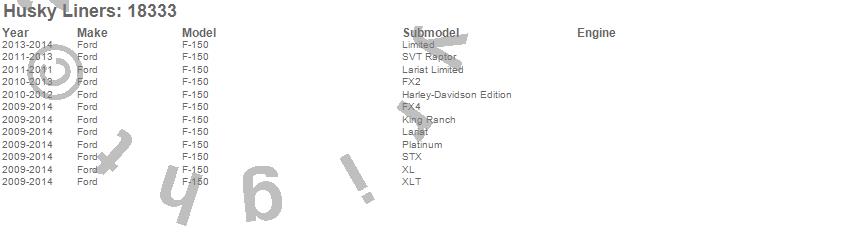 Below is an abreviated list of applications for the WeatherBeater Floor Liner.