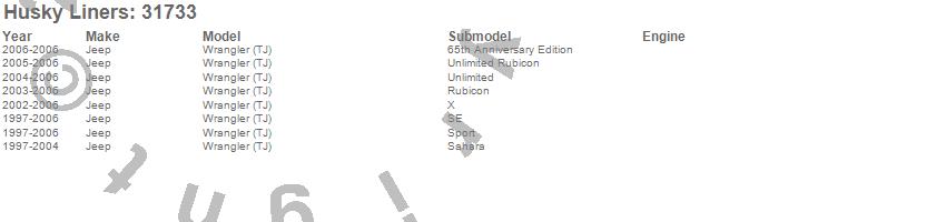 Below is an abreviated list of applications for the Classic Style Floor Liner.