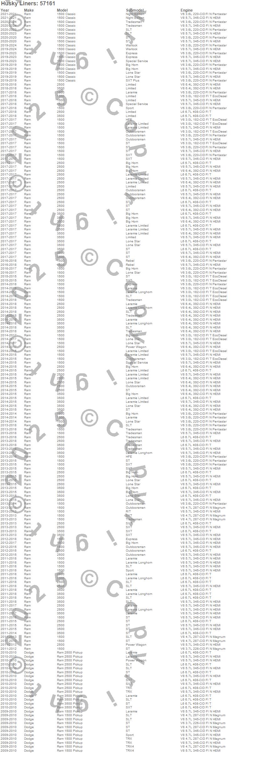 Below is an abreviated list of applications for the Custom Molded Mud Guards.