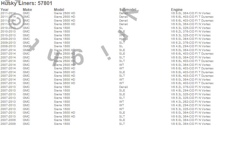 Below is an abreviated list of applications for the Custom Molded Mud Guards.