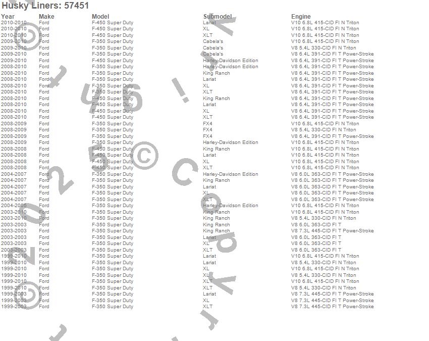 Below is an abreviated list of applications for the Custom Molded Mud Guards.