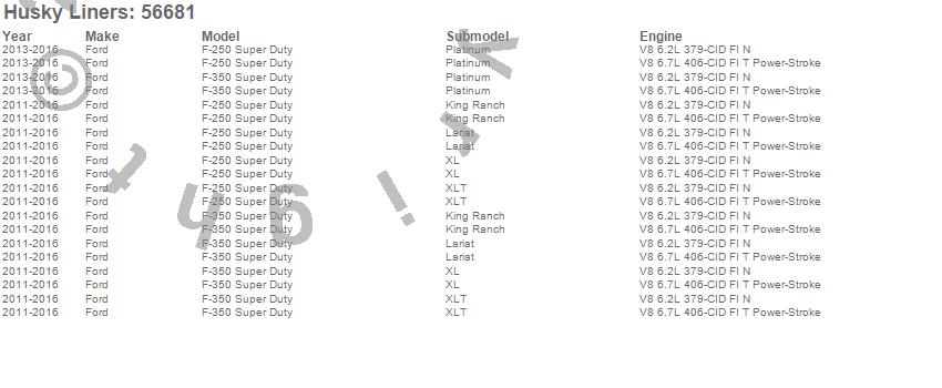 Below is an abreviated list of applications for the Custom Molded Mud Guards.