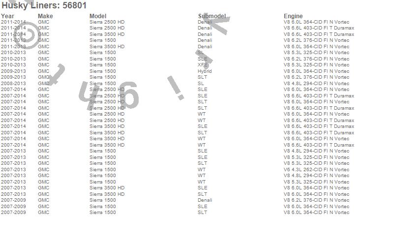 Below is an abreviated list of applications for the Custom Molded Mud Guards.