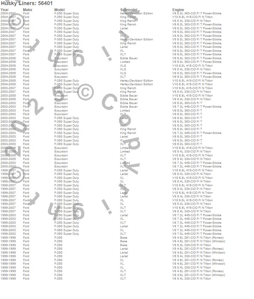 Below is an abreviated list of applications for the Custom Molded Mud Guards.