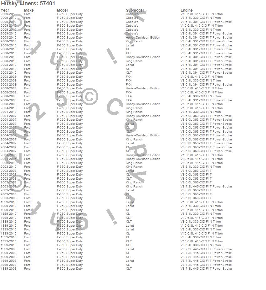 Below is an abreviated list of applications for the Custom Molded Mud Guards.