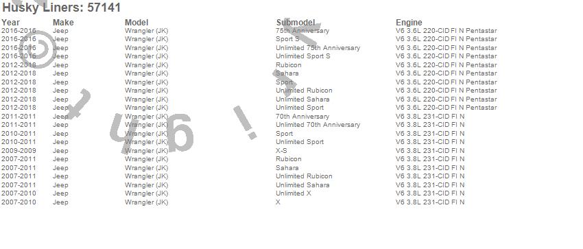 Below is an abreviated list of applications for the Custom Molded Mud Guards.