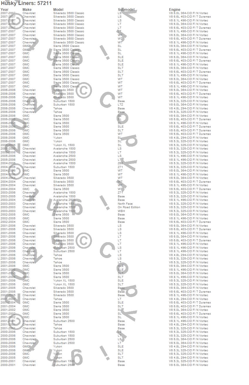 Below is an abreviated list of applications for the Custom Molded Mud Guards.