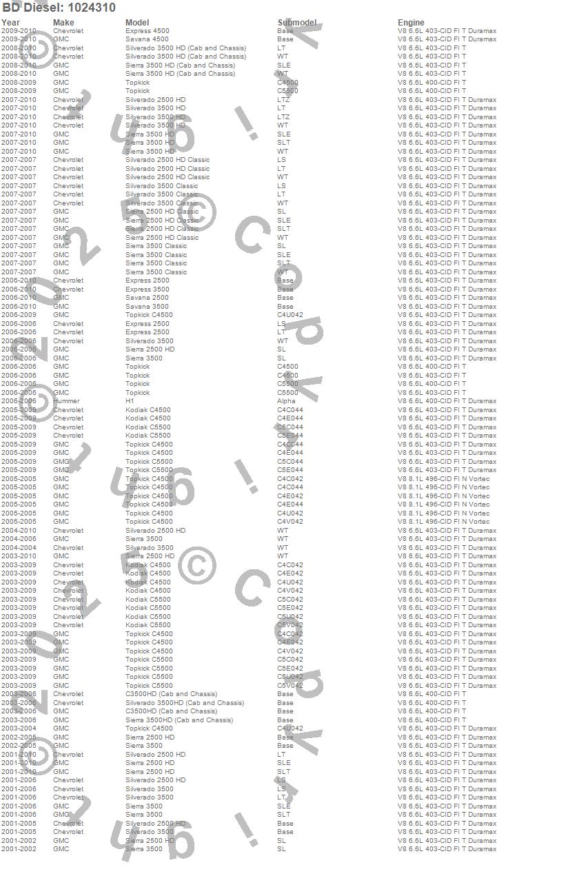 Below is an abreviated list of applications for the Original BD Exhaust Brake.