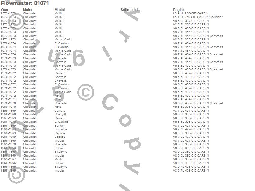 Bel Air, Biscayne, Camaro, Caprice, Chevelle, Chevy II, Impala, Malibu, Monte Carlo, Nova, Chevrolet, 1973, 1972, 1971, 1970, 1969, 1968, 1967, 1966, 1965 more…