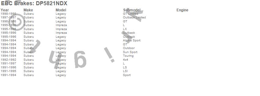 Below is an abreviated list of applications for the EBC Bluestuff NDX Full Race Brake Pads.