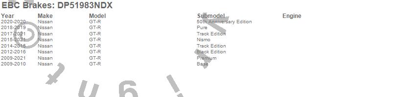 Below is an abreviated list of applications for the EBC Bluestuff NDX Full Race Brake Pads.