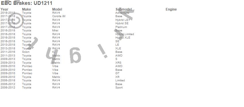 Below is an abreviated list of applications for the EBC Ultimax OEM Replacement Brake Pads. Matrix, RAV4, tC, Vibe, Pontiac, Scion, Toyota, 2016, 2015, 2014, 2013, 2012, 2011, 2010, 2009, 2008, 2007, 2006 more…