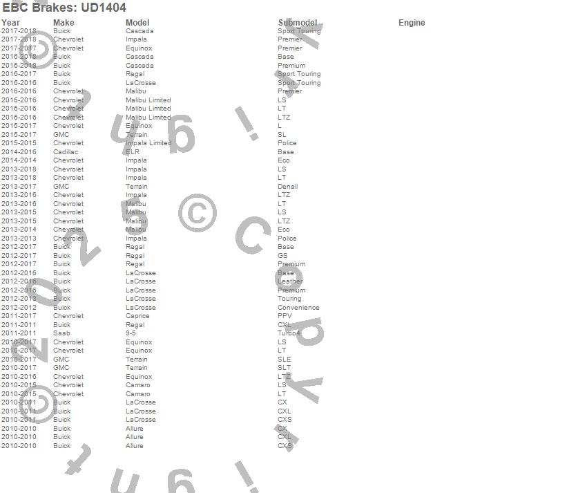 Below is an abreviated list of applications for the EBC Ultimax OEM Replacement Brake Pads.