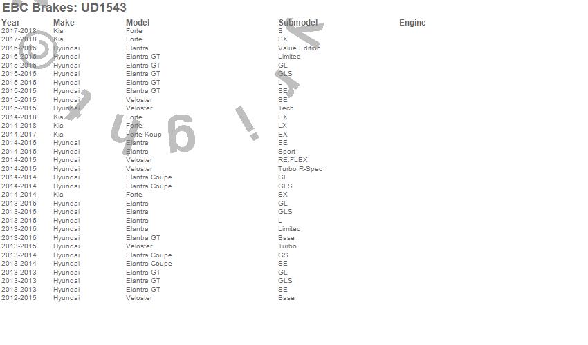 Below is an abreviated list of applications for the EBC Ultimax OEM Replacement Brake Pads.