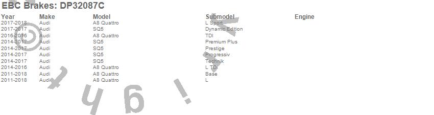 Below is an abreviated list of applications for the EBC Redstuff Ceramic Low Dust Brake Pads.