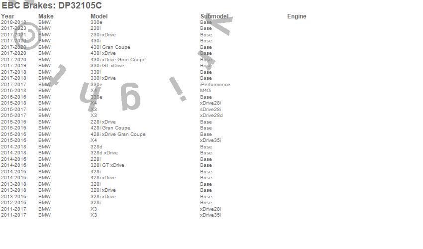 Below is an abreviated list of applications for the EBC Redstuff Ceramic Low Dust Brake Pads.