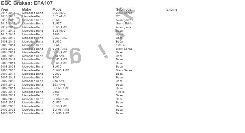 Below is an abreviated list of applications for the EBC Brake Wear Lead Sensor Kit.