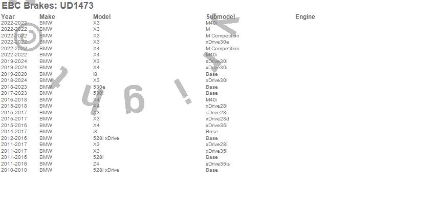 Below is an abreviated list of applications for the EBC Ultimax OEM Replacement Brake Pads.