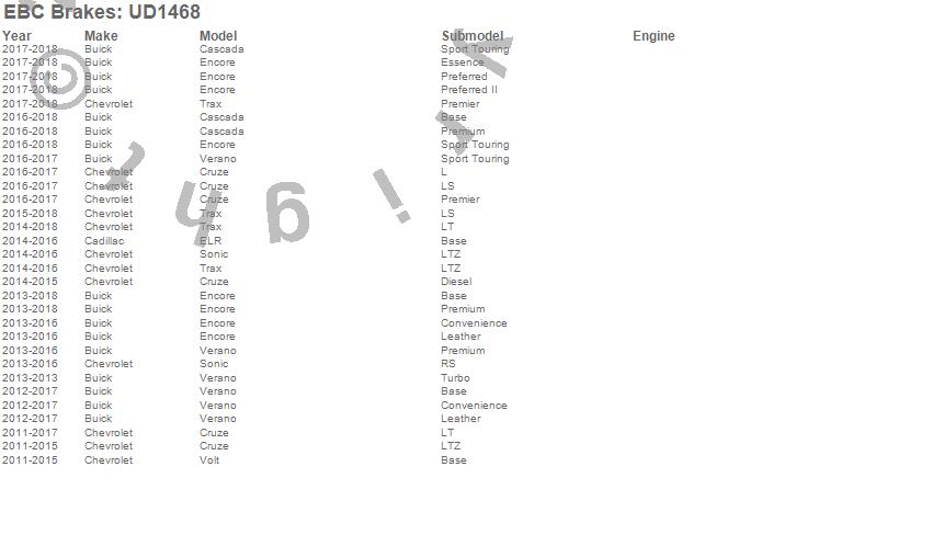 Below is an abreviated list of applications for the EBC Ultimax OEM Replacement Brake Pads.