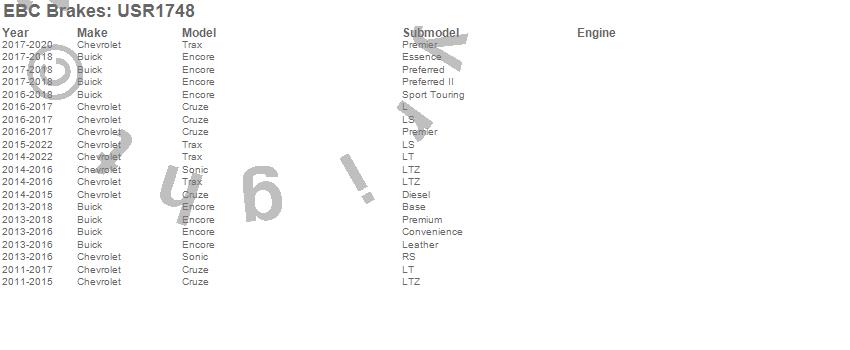 Below is an abreviated list of applications for the EBC USR Series Sport Slotted Rotor.