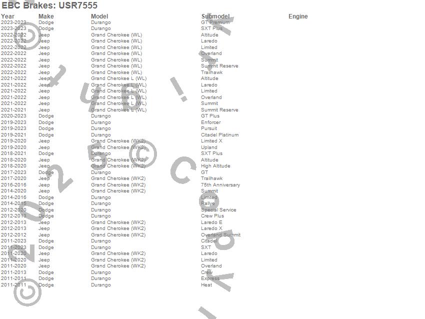 Below is an abreviated list of applications for the EBC USR Series Sport Slotted Rotor.
