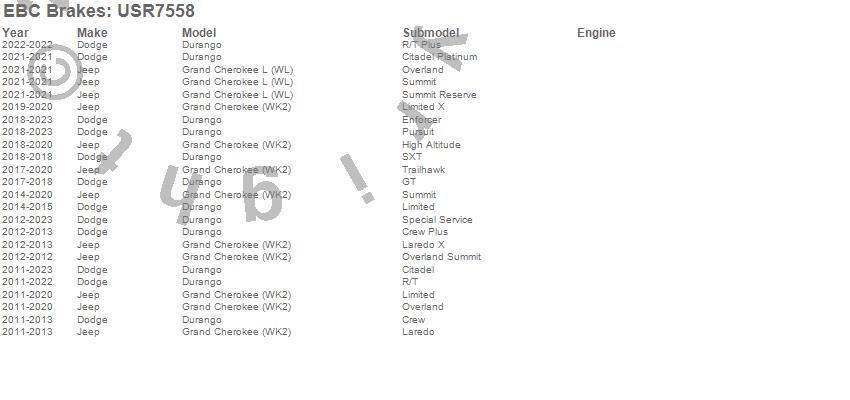 Below is an abreviated list of applications for the EBC USR Series Sport Slotted Rotor.