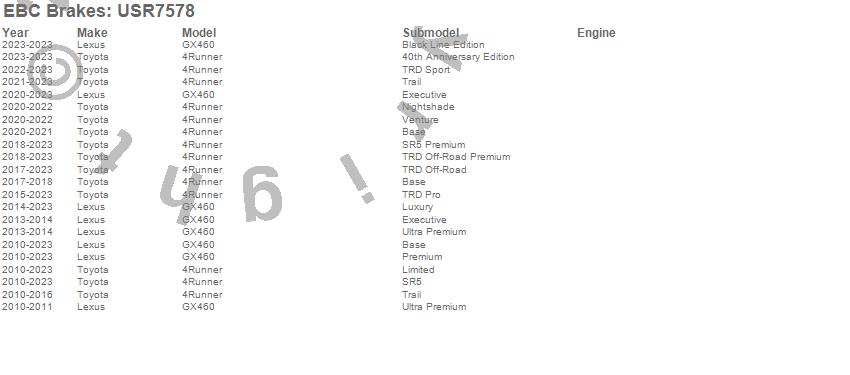 Below is an abreviated list of applications for the EBC USR Series Sport Slotted Rotor.