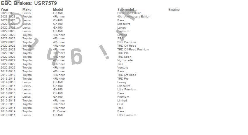 Below is an abreviated list of applications for the EBC USR Series Sport Slotted Rotor.