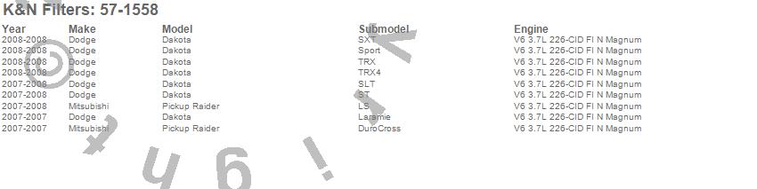 Below is an abreviated list of applications for the Filtercharger Injection Performance Kit.