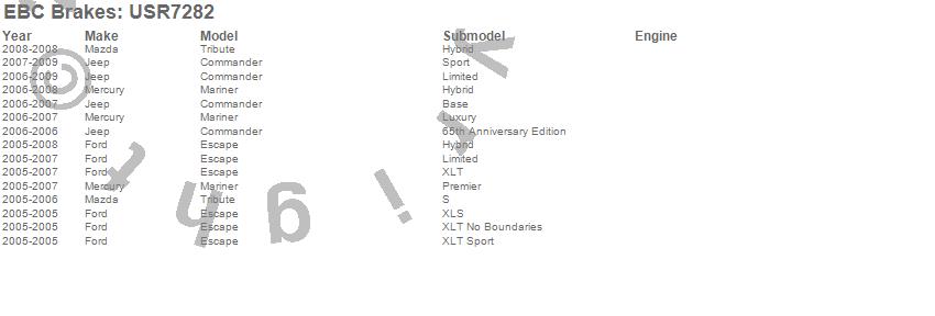 Below is an abreviated list of applications for the EBC USR Series Sport Slotted Rotor.