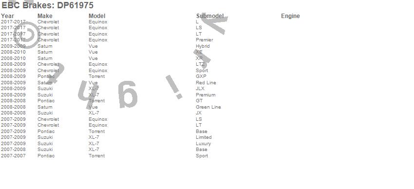 Below is an abreviated list of applications for the EBC 6000 Series Greenstuff Truck/SUV Brakes Disc Pads.