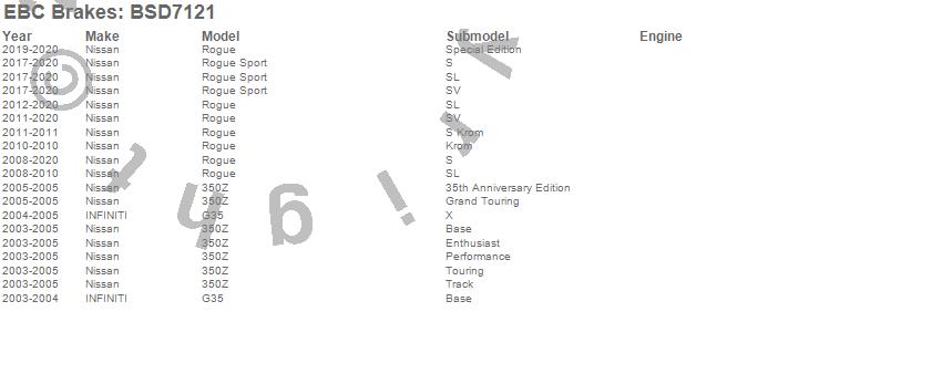 Below is an abreviated list of applications for the BSD Series Sport Rotor w/Ultra Quiet V Slot Configuration.